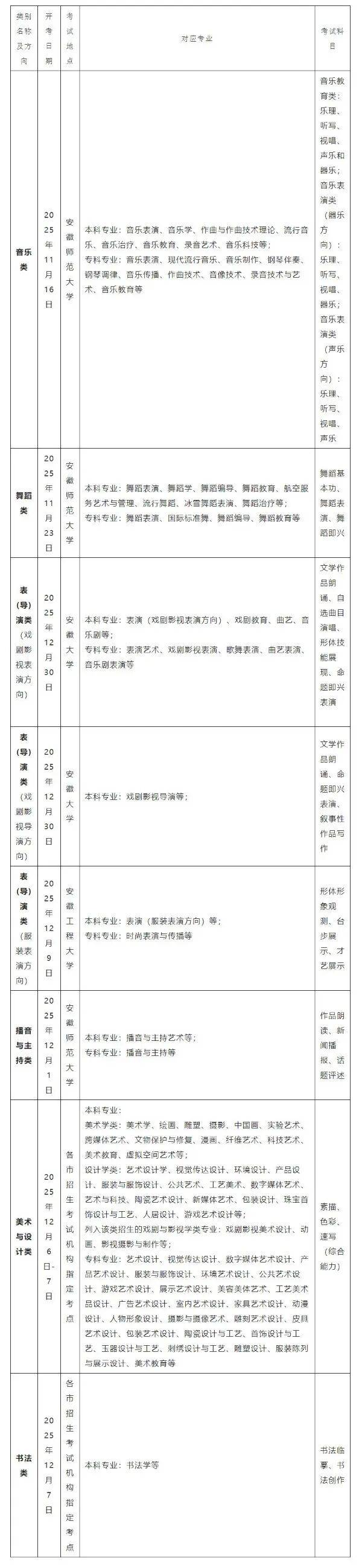 各专业省统考其他相关要求,详见《安徽省普通高校艺术类专业统一考试考试说明(试行)》。