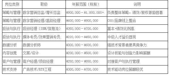 随着程序化广告、AI投放优化工具普及,具备技术与自动化工具能力的岗位(如广告技术工程师、数据分析师)薪酬增长显著。