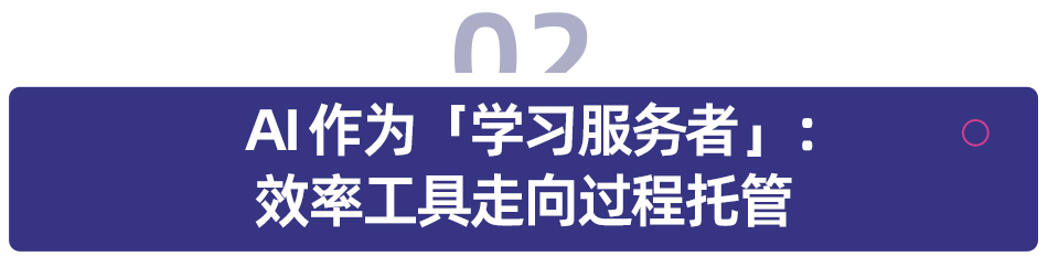 如果说 AIGC 首先重构的是内容供给体系,那么 AI 对教育行业最直接、最具规模化体感的影响,则发生在学习过程本身。过去一年,AI 对学习场景的渗透,并未优先进入低频或复杂环节,而是集中爆发在高频、刚需、可量化的效率领域——从背单词、作业辅导到学习路径规划,AI 正从单点工具,演变为覆盖学习全过程的服务者。