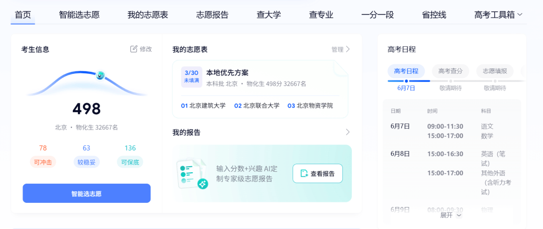 最直观的变化发生在高考志愿填报。2025 年志愿季,多家互联网平台上线对话式 AI 志愿工具后,传统咨询流程被显著压缩。用户只需输入分数、位次、城市偏好与专业意向,系统即可生成完整院校组合方案,并附带录取概率、专业梯度与就业方向分析。