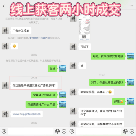 就拿我们团队来说,销售都是通过线上接单,不需要主动去开发市场,客户会主动加我们微信或者电话,我们根据客户行业和产品内容,跟他确认资质要求,专业的介绍广告推广形式、优势、价格和服务,不需要去繁琐额销售,确定没问题客户就打款对接了。