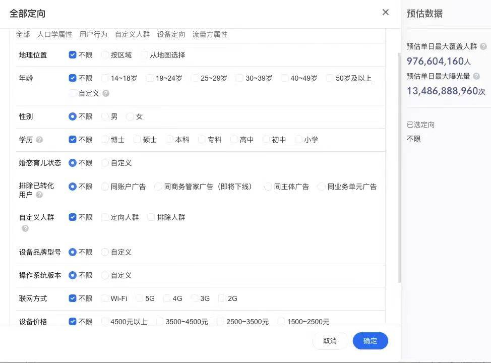 地域定向:本地商家优先锁定门店3-5公里辐射圈(精度可达500米),可精准到商圈、小区;全国品牌按城市等级(核心、重点、普通)分层投放,避免浪费预算。